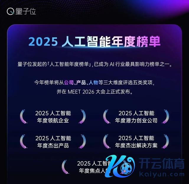 评比法式可见于:2025 东谈主工智能年度评比启动!3 大维度 5 类奖项,正在寻找 AI+ 期间领航者
