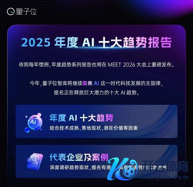 本年,敷陈将络续聚焦 AI 这一期间科技发展的主旋律,联接技巧熟识、落地近况、潜在价值等要素,在《2025 年度 AI 十大趋势敷陈》中提名正在开释刚劲后劲的十大 AI 趋势,并对各趋势进行深化分析,提名代表机构、最好案例等。
