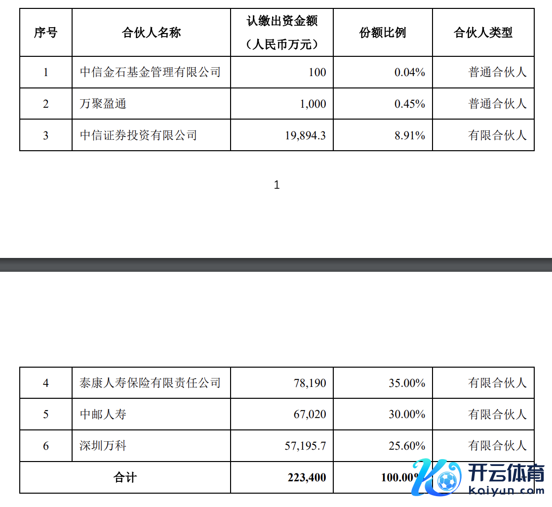 该基金的召募边界为东说念主民币22.34亿元。其中,万科下属子公司万聚盈通认缴出资金额为东说念主民币1000万元、深圳万科认缴出资金额为东说念主民币124215.70万元,总共占中信万科糜费基础方法基金的比例为56.05%。