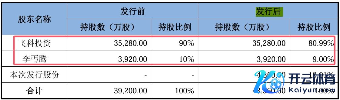 其中,执股80.99%的上海飞科投资是由实控东说念主李丐腾家眷100%甘休的,加上李丐腾径直执有的9%,李丐腾家眷统统执股89.99%。