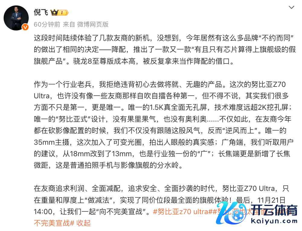 努比亚Z70 Ultra手机将于11月21日发布。也便是说体育游戏app平台,未来人人就八认识到这款新机了。