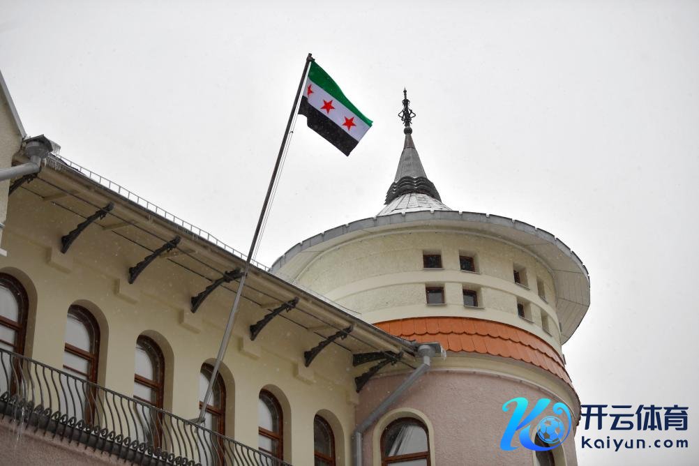 12月9日,在俄罗斯都门莫斯科,叙利亚驻俄罗斯使馆升空代表叙利亚反对派的旗子。新华社发(亚历山大摄)