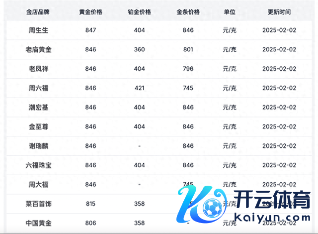 国内零卖端品牌足金饰品的价钱一样水长船高。2月2日,国内黄金珠宝品牌足金首饰价钱最高者依然打破847元/克。