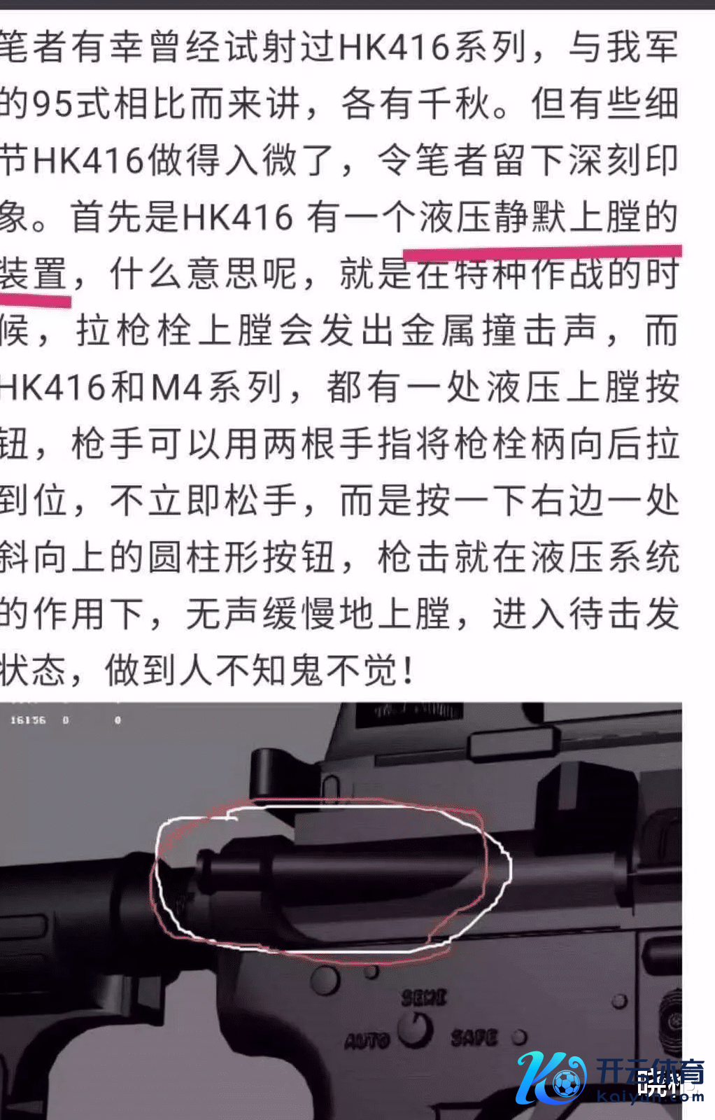 △ 确切的液压机构,液压液压,最起码得有液体啊其实这个东西啊,真名叫作念forward assist,华文一般翻译成赞成推机,而这个机构的出身,还要从AR15/M4/M16/HK416的拉机柄筹画提及。△ AR15的枪机组(下)和拉机柄 彰着不是一体的家喻户晓,AR15是不随动拉机柄,它的拉机柄在打枪的时刻,是不会走动解析的。而像AK、95这些罗致随动拉机柄的枪械,拉机柄在开火的时刻,就会走动飞行,枪械筹画不好的话,走动飞行的拉机柄还容易打平直指。△ AK的拉机柄