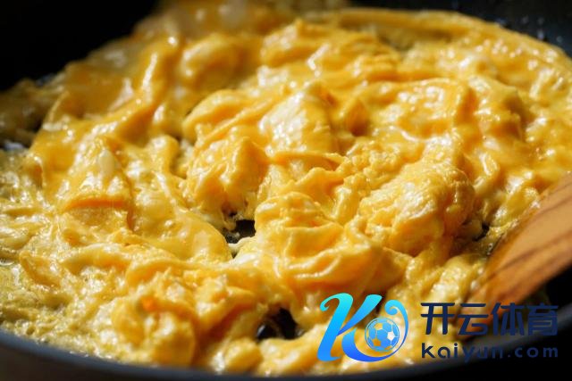 2 个鸡蛋打散,倒入热油锅,