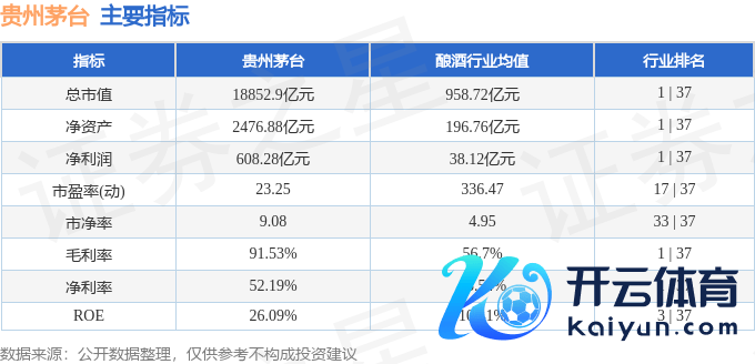 贵州茅台2024年三季报露出,公司主营收入1231.23亿元,同比上升16.91%;归母净利润608.28亿元,同比上升15.04%;扣非净利润607.79亿元,同比上升15.08%;其中2024年第三季度,公司单季度主营收入396.71亿元,同比上升15.56%;单季度归母净利润191.32亿元,同比上升13.23%;单季度扣非净利润191.09亿元,同比上升13.28%;欠债率13.63%,投资收益801.94万元,财务用度-11.73亿元,毛利率91.53%。贵州茅台(600519)主贸易务:茅台酒及系列酒的坐蓐与销售。