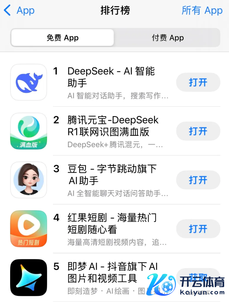 QuestMobile 数据涌现,完毕 2 月 9 日,元宝 DAU 还仅有几十万,仅仅 DeepSeek、豆包的零头。借投放之势,2 月底元宝在 iOS 的 App Store 免费榜名次从 200 名开外,飙升至第 2 名,仅列在 DeepSeek 之后。