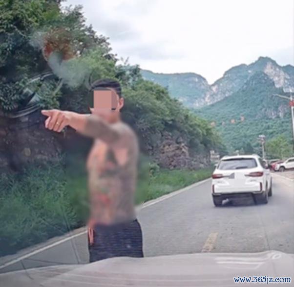 ▲视频截图,男人赤裸上身,涌现纹身拦住并詈骂后车车主