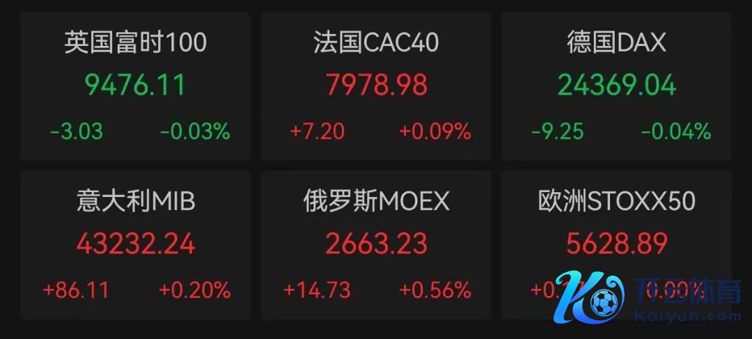 欧洲主要股指开盘涨跌不一,截止本日(10月7日)17时54分,德国DAX30指数跌0.04%,英国富时100指数跌0.03%,法国CAC40指数涨0.09%,意大利富时MIB指数涨0.2%。